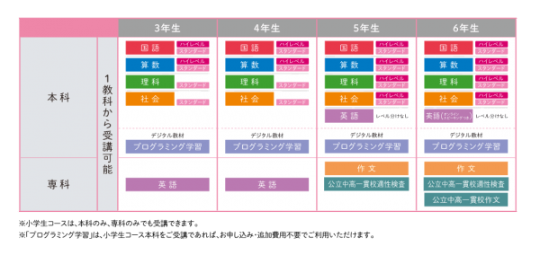 中学校受験コース | 月13,464円~(4教科の場合) | 3~6年生 |